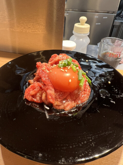 ユッケは、綺麗なお肉で光輝いております!黄身を割って一緒に食べれば、とろとろの食感がたまりません⭐️