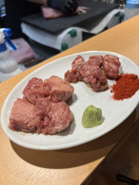 タン食べ比べは、塩タン・中落ちタンを食べ比べました⭐️!塩タンは、とても分厚いのですが柔らかく歯応えも良くて美味しいです!想像以上の柔らかさと旨味が最高で、レモンやわさびでいただきました