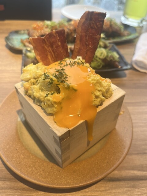 肉酒場のポテサラは、ホクホクなジャガイモとまろやかな卵黄、ベーコンの相性が抜群です!