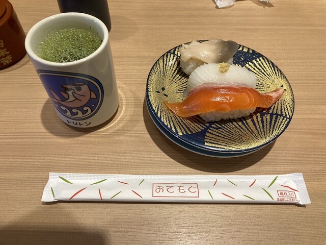 サーモン、ホッケ、イカ、天然白ツブなどお腹一杯食べました。二人で13皿ほど。