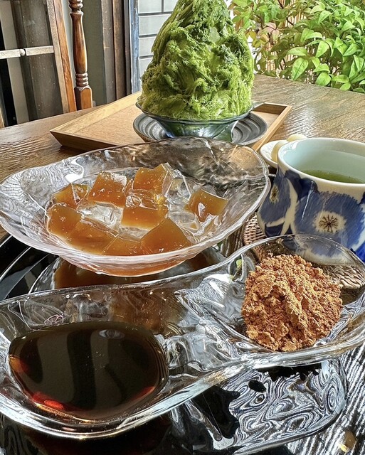 アイスわらび餅についてくるきなこを宇治のかき氷にかけて、きなこ抹茶かき氷にしてみたけど、写真ばっか撮ってたから氷溶けちゃって下の方びちょびちょ