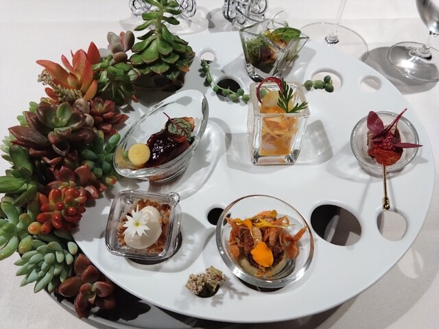 最初に出てくるスープが絶品です。野菜の甘さと香りを凝縮させた温かいスープを飲んで期待を高めたところでコースがスタートします。この演出は流石ですね。