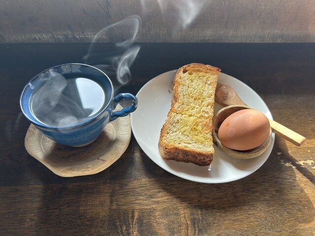安定のモーニング、今日の黄身は少しばかり半熟際立つ仕上がりだったので途中からスプーンで掬って頂いた。