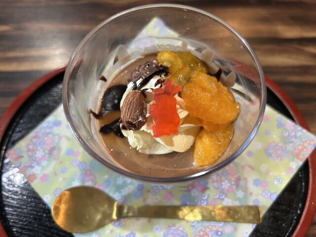 普段はお膳のみでの注文だったが、今回は最初で最後のデザートを付けた。チョコプリンに、ちょこっと時間の癒し。