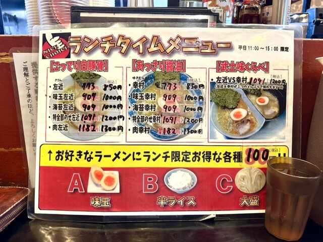 醤油の〝幸村〟、豚骨の〝左近〟がメインのようです。やっはり豚骨かな。島左近、好きな武将だし。