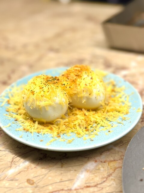 〝ウフマヨ〟は濃厚な卵で美味しい!降りかかった黄色い謎の粒もいいアクセントに。