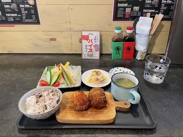 衣がサクサクで中は具がたっぷりの濃厚コロッケです。今まで食べたコロッケの中で一番美味しかったと思います。その他サラダ、ポテサラ、玄米ご飯、味噌汁、イチジクとヨーグルトがついて¥1,100!コスパ最強の美味しいコロッケ料理が堪能できました。また近くに来れることがあれば立ち寄りたいです。