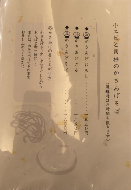小エビと貝柱のかきあげそばのスタイルは3種類。