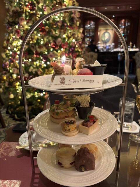 ピアノのバースデーソングの演奏と共に、アフタヌーンティーを提供していただきました。