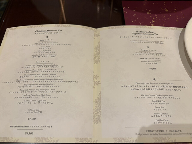 【クリスマスアフタヌーンティーのためにお選びした5種類の紅茶から、お好きなものをお好きなだけお召し上がりください。】