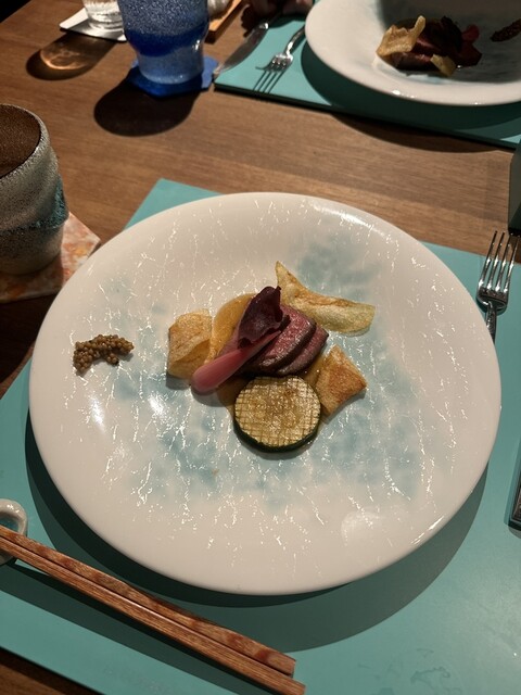 沖縄の食材を使用した創作メニューで、お皿も沖縄感️があり、楽しめました。