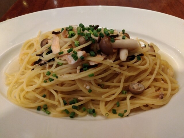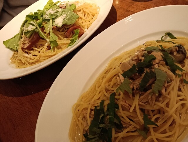 ランチは日替わりのものと固定のものとがあり、種類豊富なパスタが楽しめます。サラダがセットとして含まれており、¥150の追加で大盛りにもできます。さらには日替わりのランチデザートがあり、ちょっとしたコース料理のようです。