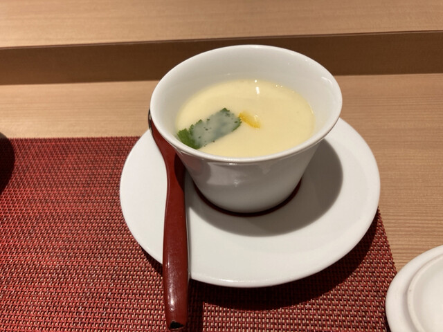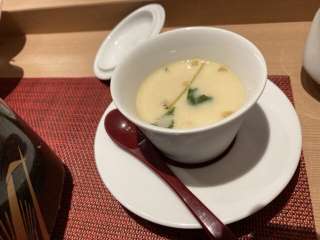 サラダと茶碗蒸し サラダにはシラウオがのっていた