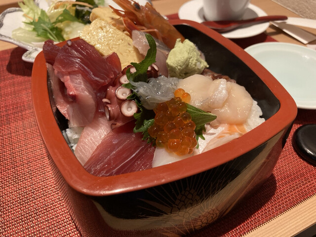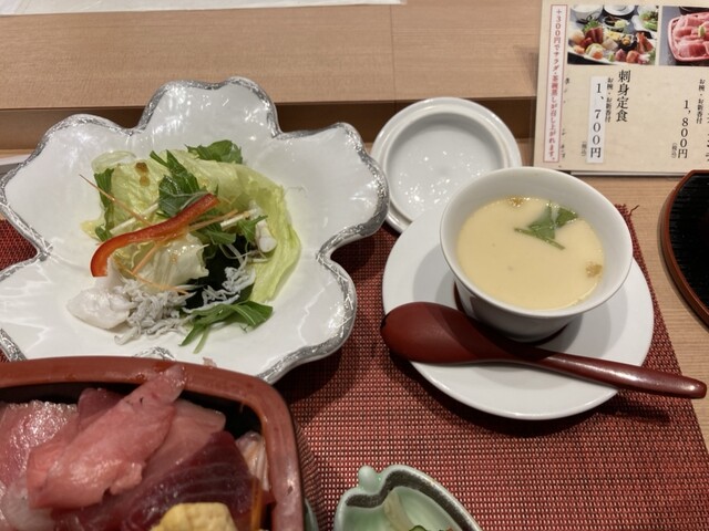 ちらし丼ランチ1500円、サラダ•茶碗蒸しセット300円