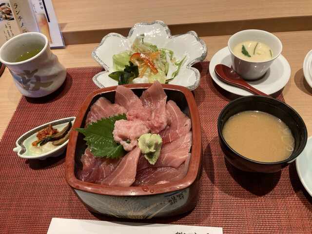 最近お気に入りの中とろ丼ランチとサラダ•茶碗蒸しセットを注文しました。