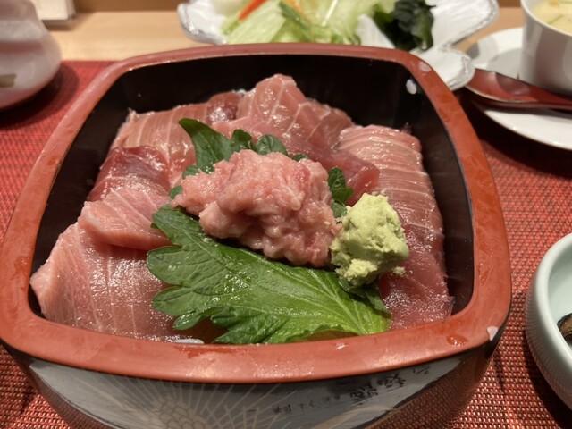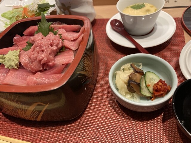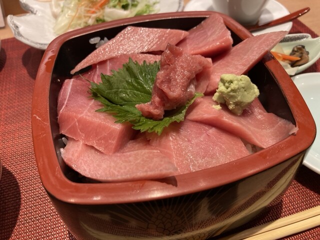 中とろ丼ランチ1800円、サラダ•茶碗蒸しセット300円