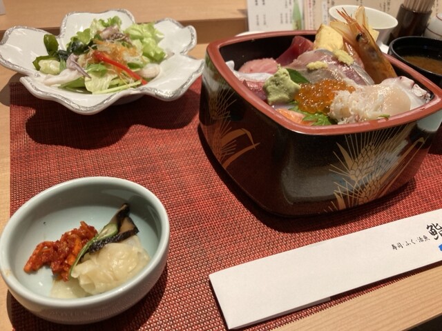 いつものちらし丼ランチとサラダ•茶碗蒸しセットを注文しました。
