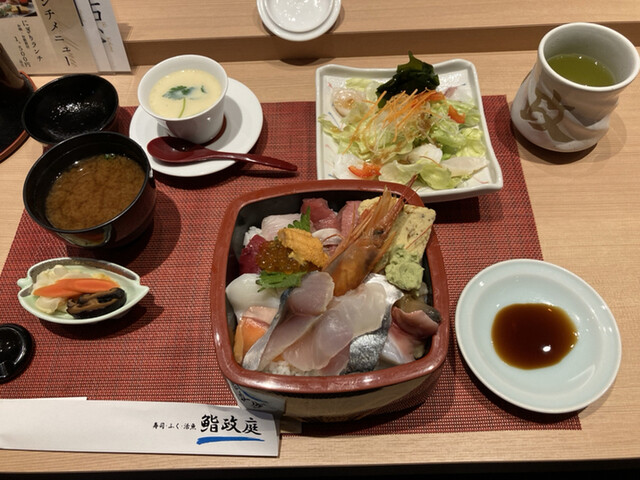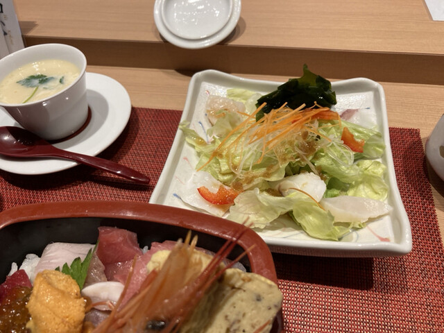 ちらし丼が1500円、サラダ・茶碗蒸しが300円なのでランチとしてはちょっと高い感じはしますが、ネタの内容からすると高くはないと思います。