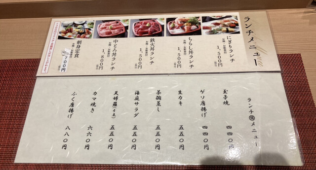 前回はちらし丼ランチを食べたので、今回は中とろ丼ランチにしました。中とろ丼ランチは1800円です。