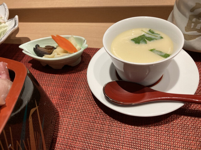 茶碗蒸しはぷりぷりのエビが2.3個入っていました。すごく美味しいです。