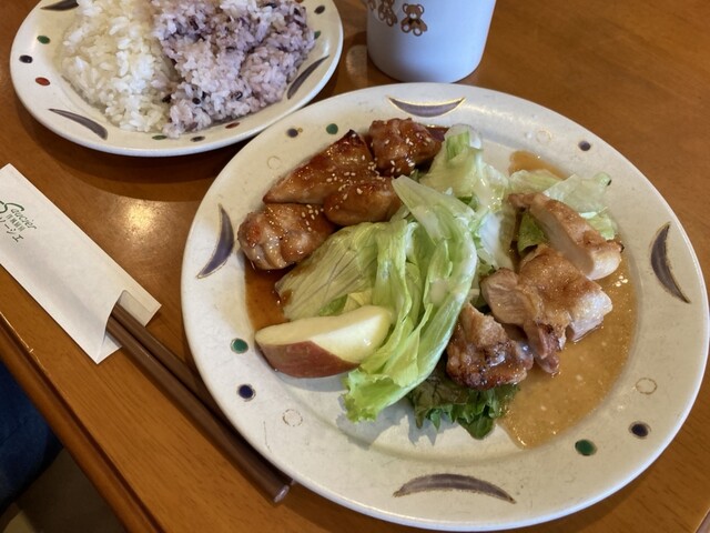 この日の日替わりはチキンの照り焼きでした。ソーシエランチは日替わりともう1品選べるので、前回良かった阿部鶏のジャポソースにしました。
