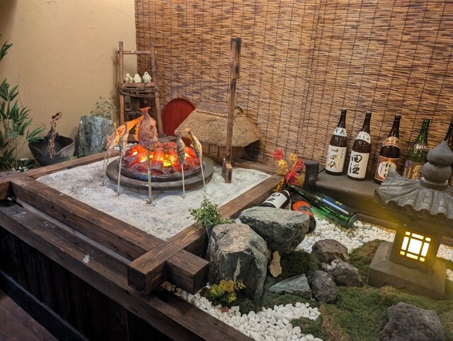 入口から地下に入り店扉に向かう途中には炉端の置物!いい感じ〜!