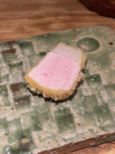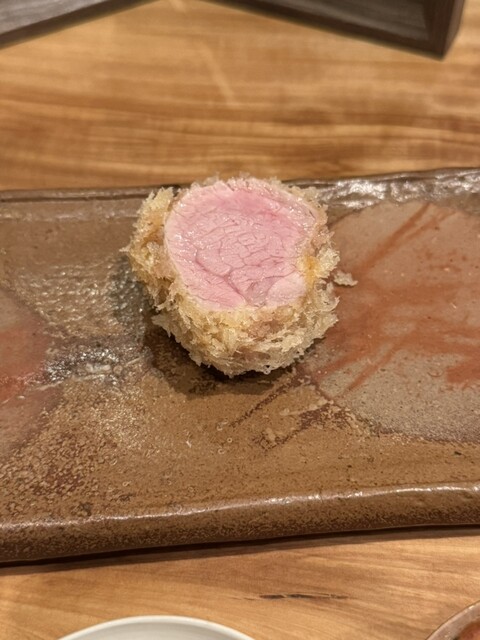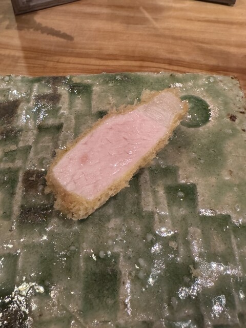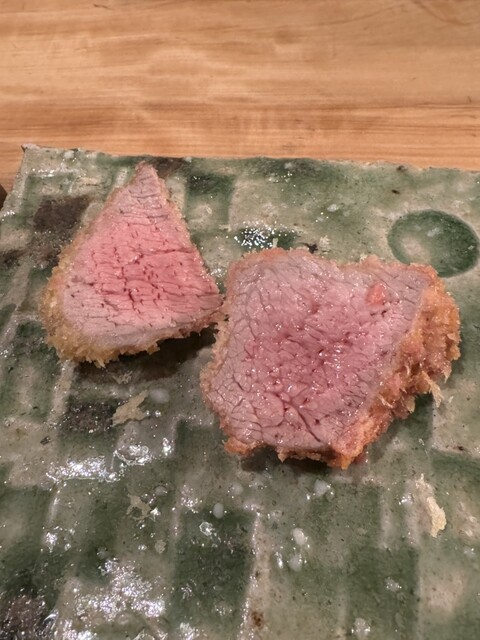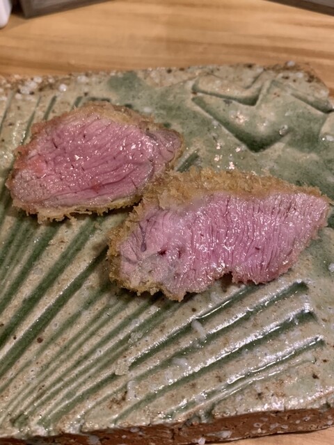 風味豊かな印象で、最近食べたヒレカツの中では旨味が強い。ぬっちりした魅惑的な食感で塩がよく合いました。