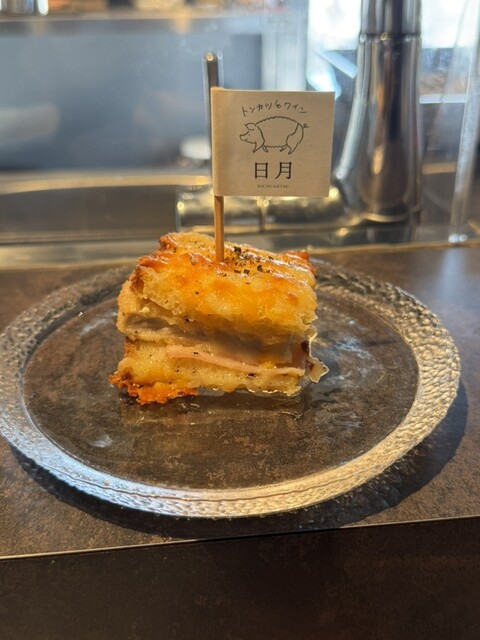 パンはカリカリで、あっさりしたベシャメルソースにブラックペッパーがアクセント。中はロースハムだけでなく、薄めのとんかつも入っていました。
