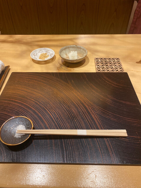 カウンター席のみの高級感溢れる店内でお任せコースをいただきます♪