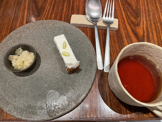 〆のデザートはかなりの酸っぱさと甘さの対極を感じるグラニテとチーズケーキの甘さと塩気を感じる生地というこだわりを感じるスイーツでした。美味いね。紅茶は数種類ある中からルフナを選択。癖のない飲みやすい紅茶でしたね。ご馳走様でした。