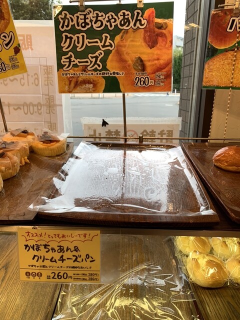 かぼちゃあんクリームチーズ(260円)を購入。最後の一つを取って現物を撮り損ねた。かぼちゃが甘く、クリームチーズは少し酸味があり、バランスよく美味しい。かぼちゃあんたっぷりなのも嬉しい。満足。次回はカレーパンを買いたい。