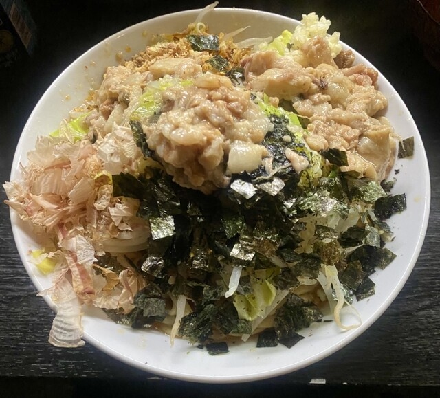 つけ汁 ニンニク、ヤサイ、アブラ増し