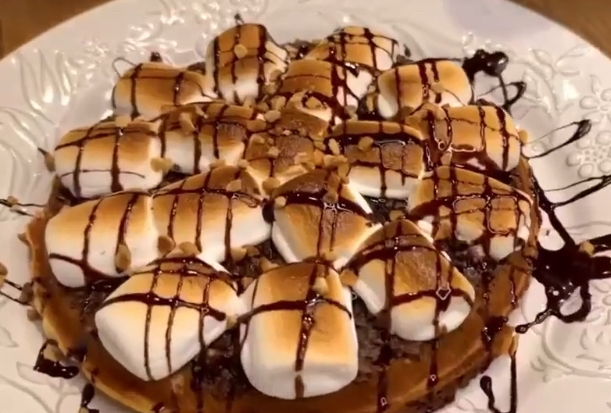 14時過ぎに来店、マシュマロのとっても美味しそうなワッフル❣️量が多そうなので、お友達とシェアすることにしました。