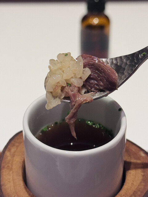 韓国のサムゲタンをフレンチにあうように少しアレンジを加えつつも、香辛料や風味はしっかりとサムゲタン!ほっと芯から温まる一品でした。