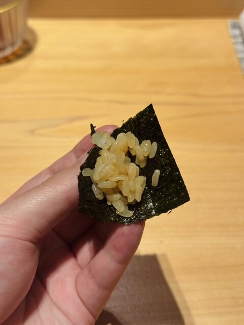 雲丹は新鮮で全く臭みなどは無く、シンプルド直球に美味い。トロと雲丹が蕩けていき、シャリと混ざりあって口の中で完成する様は何度でも味わいたいです。美味すぎる〜…