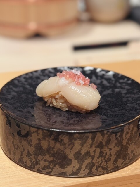 ▶︎3日ほど寝かせ熟成させた昆布〆らしく、ねっとりと旨味が増していて美味しい。甘味の増したシャリが美味〜