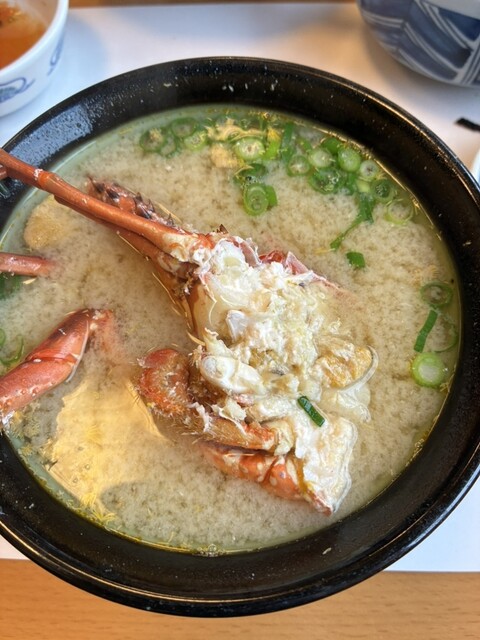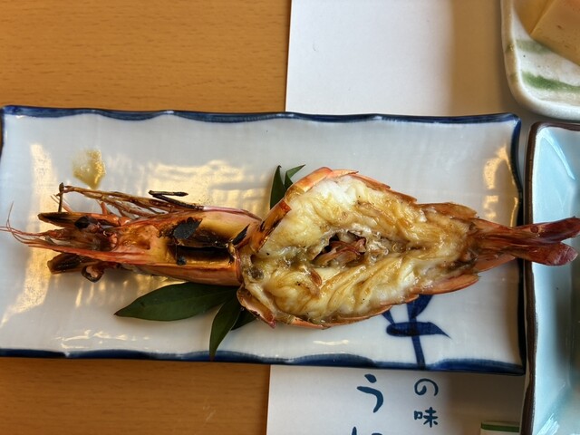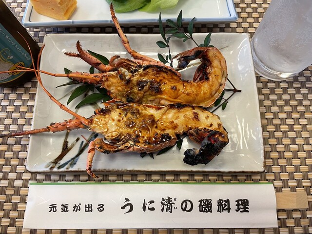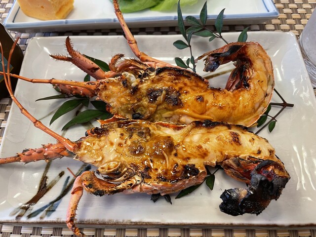 また伊勢海老のオニガラ焼きは、香ばしくエビ味噌が楽しめました。焼き魚、サザエのつぼ焼き、蒸しうにも前菜でいただきました。最後に伊勢海老のお造りの殻を使って、お味噌汁を作ってくださいます。こちらは磯の良い香りがして、お上品なお味のお味噌汁でお腹いっぱいでも美味しくいただくことができました。