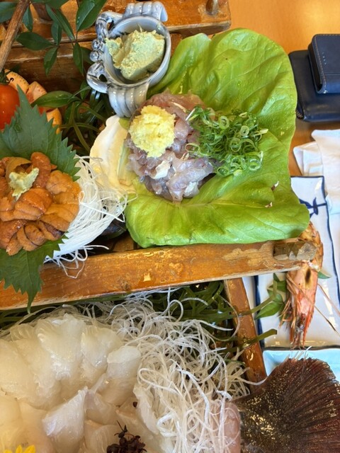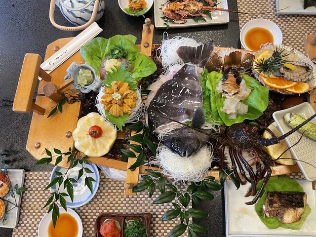 活魚料理船盛り(伊勢海老、ひらめ、アワビ、生サザエ、生ウニ、鰹たたき)