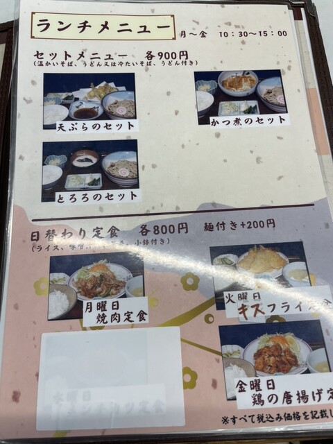 お蕎麦屋さんの定食メニュー