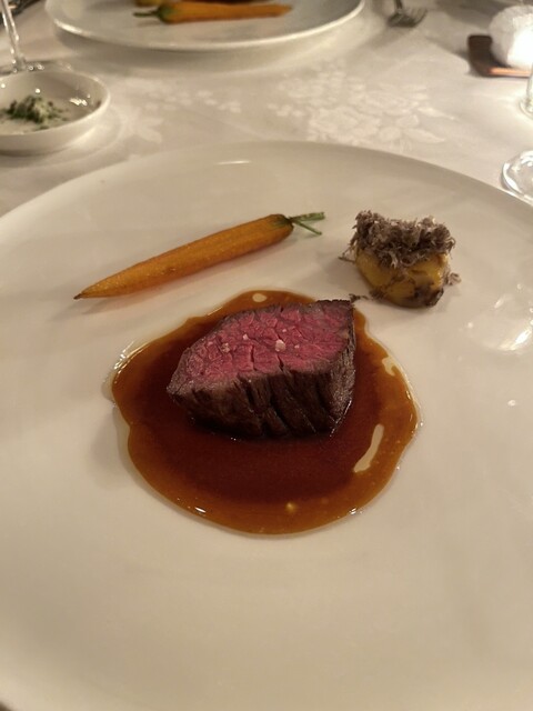 金目鯛の鱗焼きのレモンコンフィチュールが少し苦味があり、バターソースと相まって良かった。