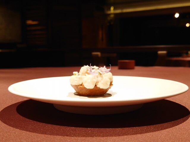 勢子蟹内子(勢子蟹内子タルト、セリー酒ソース)