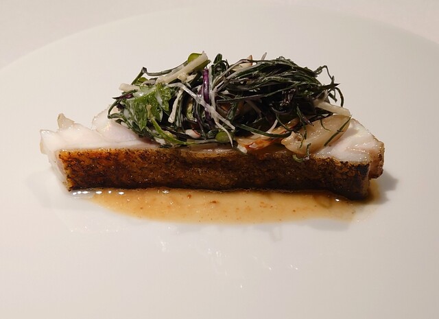 針烏賊(針烏賊、米粉クレープ、イタリアンパセリ、コリアンダー、アーモンド)