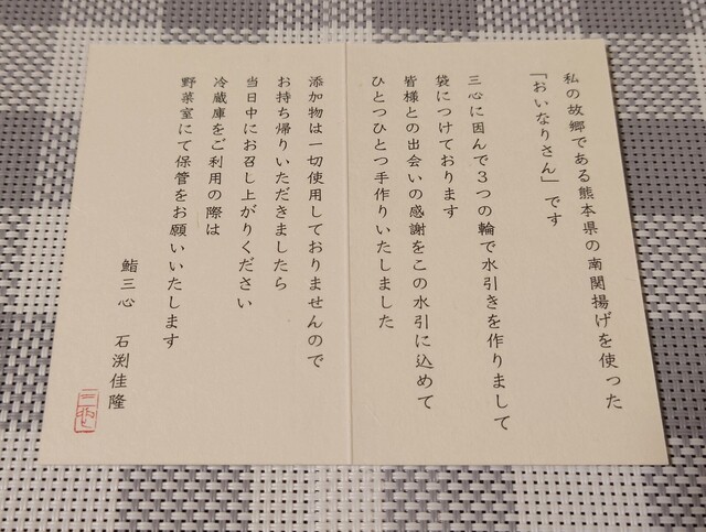 お土産寿司の挨拶文