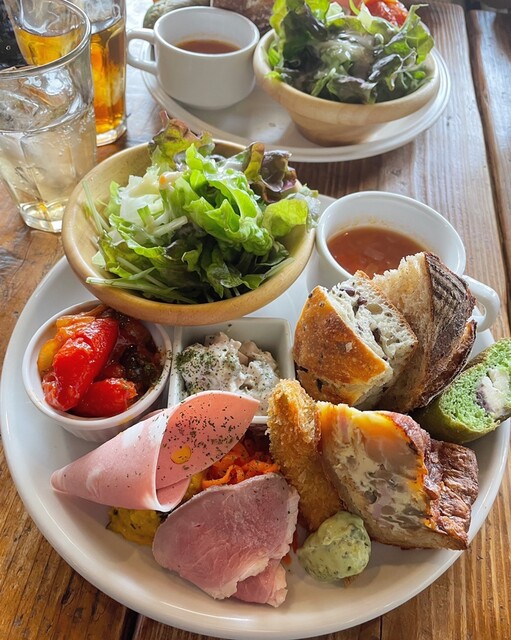 どの料理もパンに合いそうなもので、キッシュやサラダ、ハム、スープなど盛りだくさんのプレートでした。