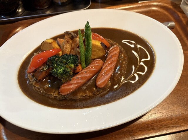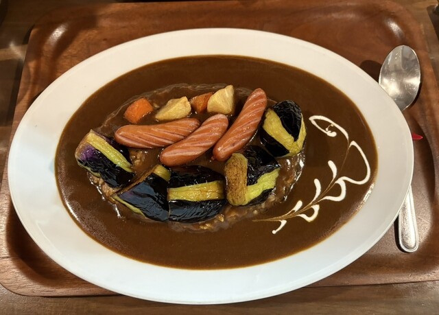 ソーセージ,揚げなすを組合した大盛カレー(1,300円)