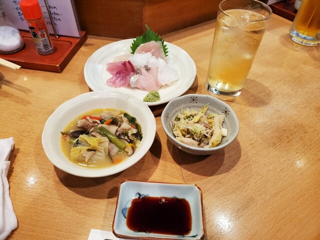 お通しx2 刺身盛り合わせ
