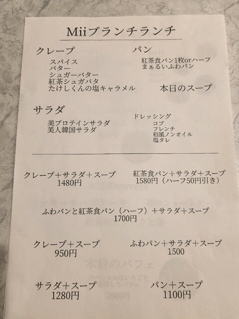クレープ(紅茶シュガバタ)+サラダ+スープ 1,480円
