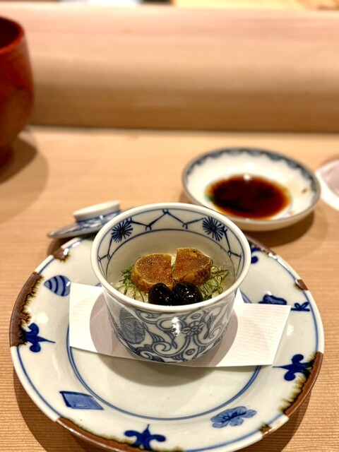 ひと口いただいた瞬間、蟹味噌の濃厚さとフォアグラの甘い香りがふわっと広がって、口の中が一気に豊かに。なめらかな茶碗蒸しが優しく包み込んで、最初の一品から心を掴まれました。