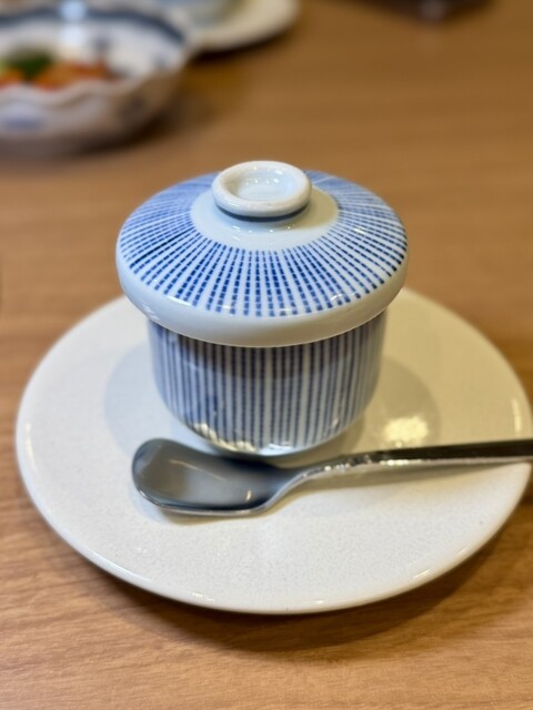 大きめのごろごろ牛肉がたっぷり入った茶碗蒸し。お肉の旨みが滲み出ています。ホタテも入っていて、食べ応えのある茶碗蒸しです。