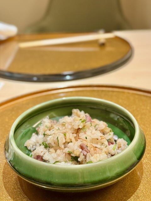 大分県産黒毛和牛の内もも肉をユッケにし、北海道産バフンウニと佐賀県の高級海苔「一流浜」で包んだ贅沢なスターター。肉の旨み・ウニの甘み・海苔の香りが見事に調和し、“味の多重奏”を感じました。